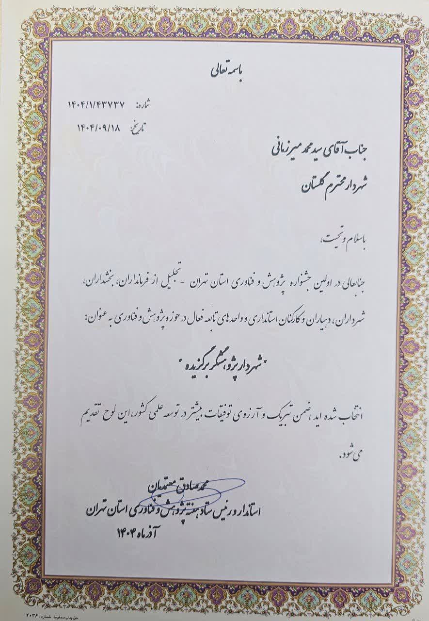در نخستین بازدید رسمی از زمینهای گلف و وودبال بوستان ۱۰۰ هکتاری استاد شهریار، دکتر حمید عزیزی رئیس فدراسیون گلف کشور با حضور در شهر گلستان، ضمن بررسی ظرفیتهای این زمینها، از چشمانداز بلند مدیریت شهری و جانمایی هوشمندانه مجموعه تقدیر کرد و این بوستان را دارای قابلیت میزبانی مسابقات کشوری دانست.